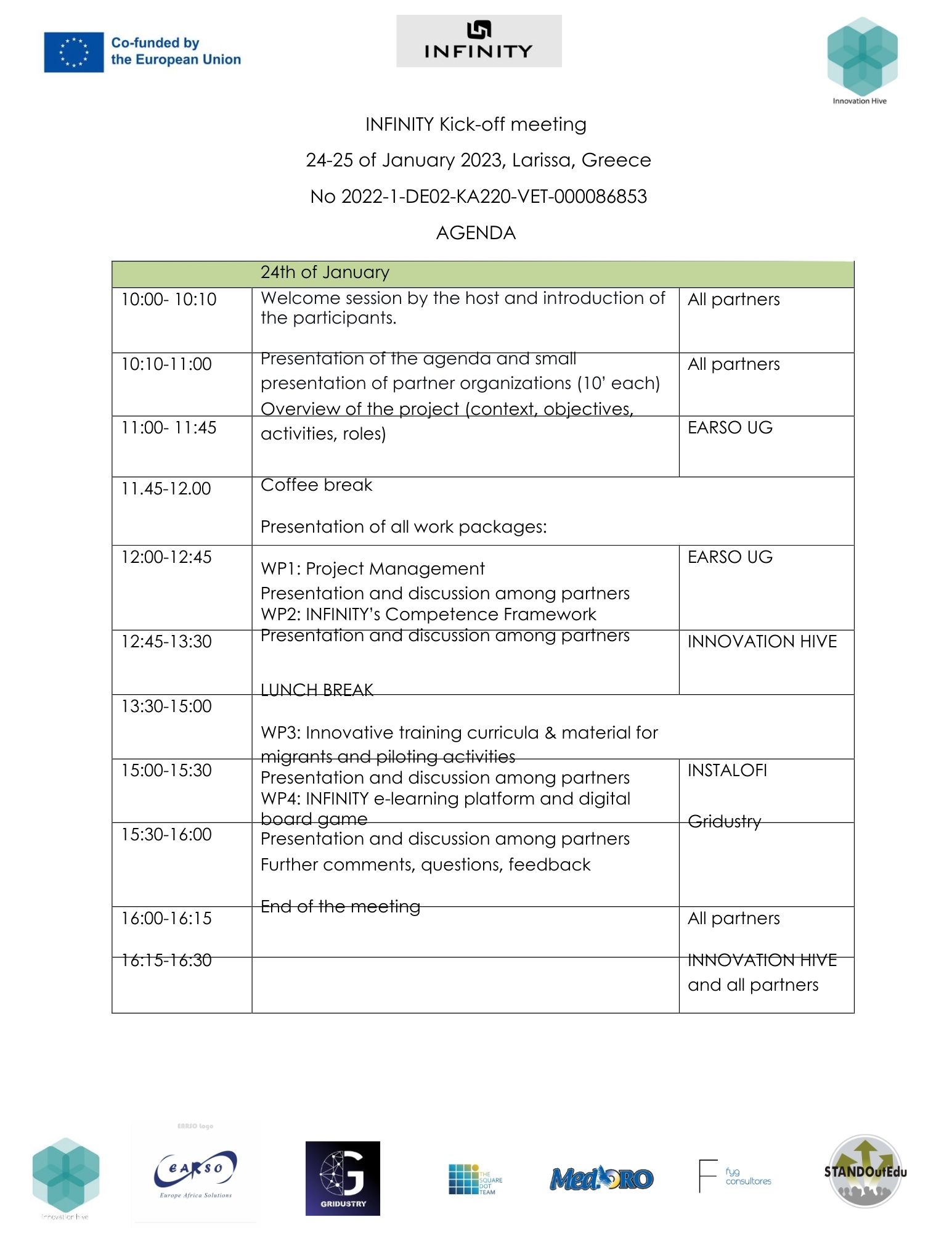 Giorno 24 aprile 2023 si è svolto in Larissa il primo TPM del progetto Infinity. Il progetto mira a migliorare l'alfabetizzazione finanziaria dei migranti e fornire loro materiali educativi, tra cui l'imprenditorialità e le competenze trasversali, per aumentare il lavoro autonomo e aiutarli a diventare membri produttivi della società.L’incontro ospitato da Innovation Hive, ha visto la partecipazione di tutti i partner.Per Medoro ha partecipato la dott.ssa Thea Messina.L’Agenda del progetto prevedeva la presentazione di tutte le attività dei 5 WP nonché del piano di sostenibilità, del piano di qualità e di valutazione e della sostenibilità del progetto